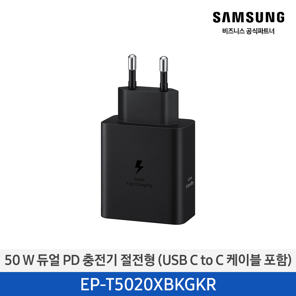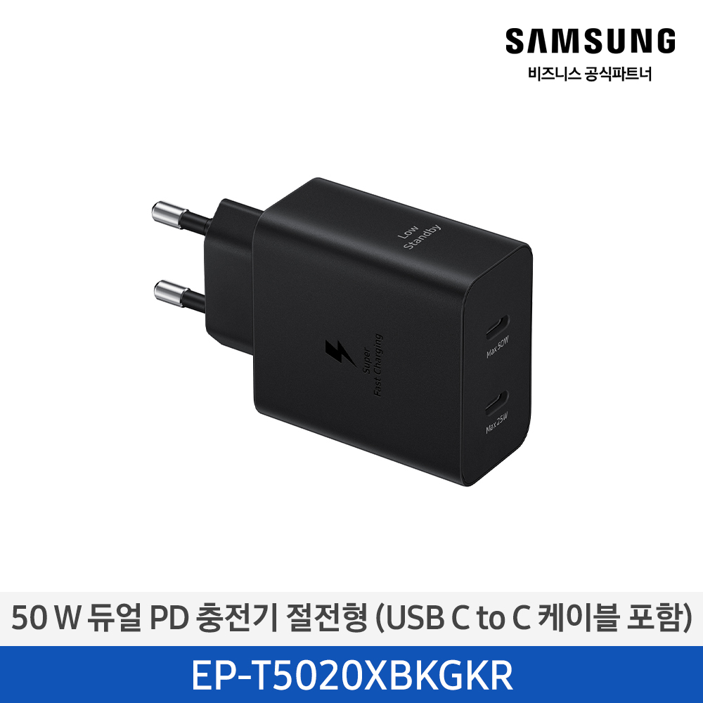 삼성 50W 듀얼 PD 충전기 절전형 (USB C to C 케이블 포함) EP-T5020XBKGKR