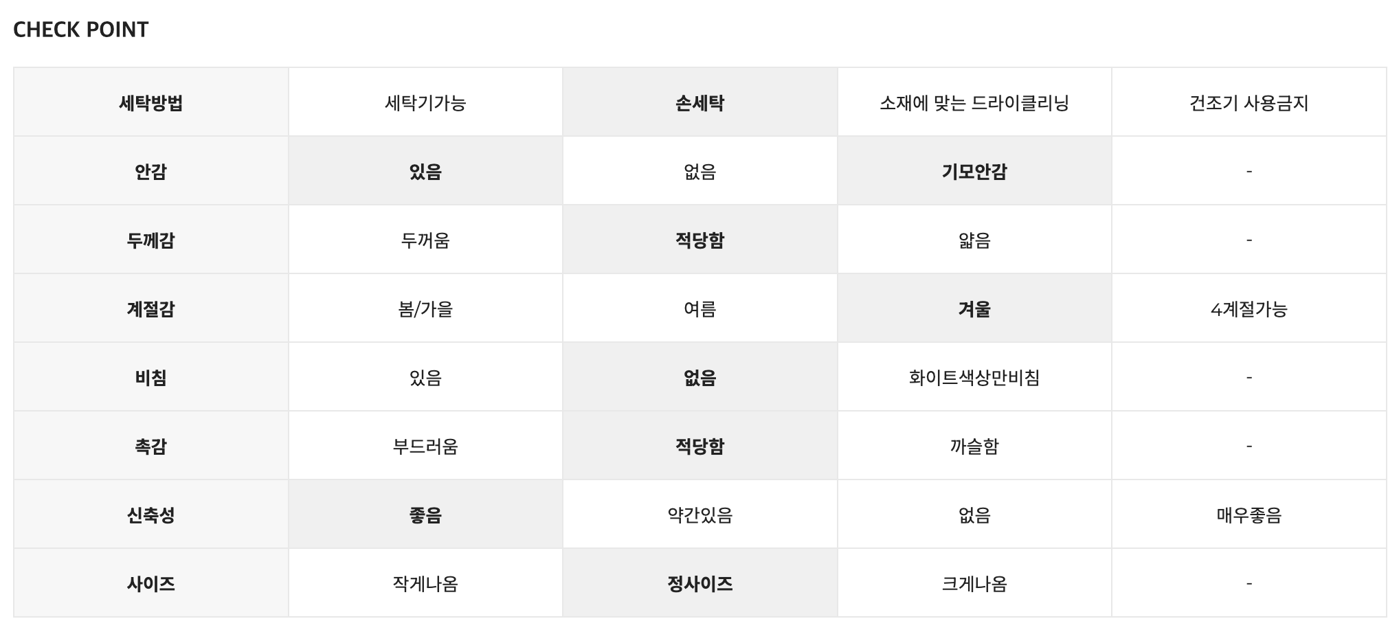 [상품정보고시]와 [제품상세정보]의 내용이 일치하지 않을 경우에는 [상품정보고시]가 더 정확한 정보입니다.