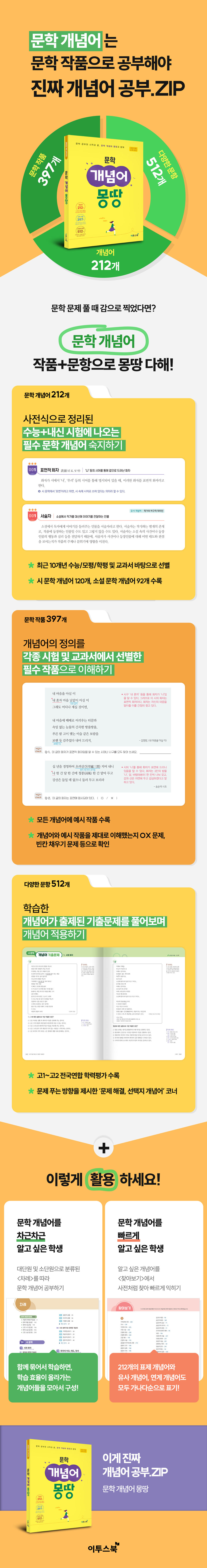 『문학 개념어 몽땅』은 국어 영역 학습에서 필수인 문학 개념어를 쉽고 정확하게 학습할 수 있는 교재이다.