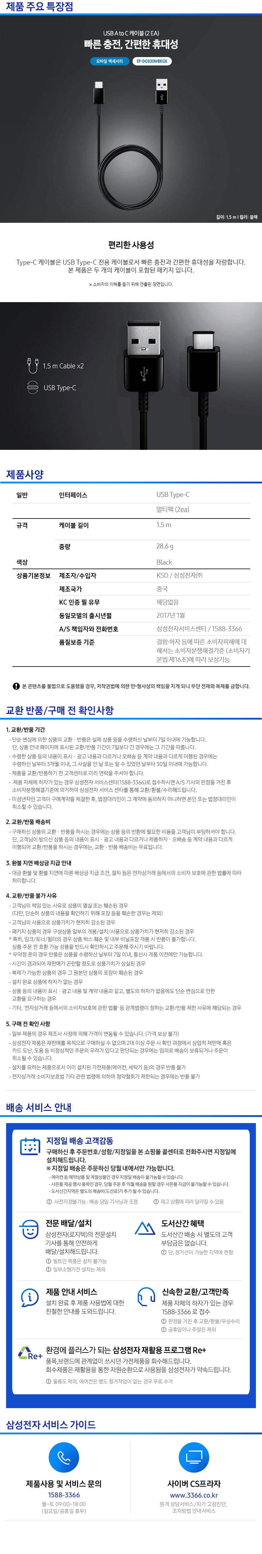 삼성 USB A to C 케이블 (2EA) 블랙 EP-DG930MBKGKR