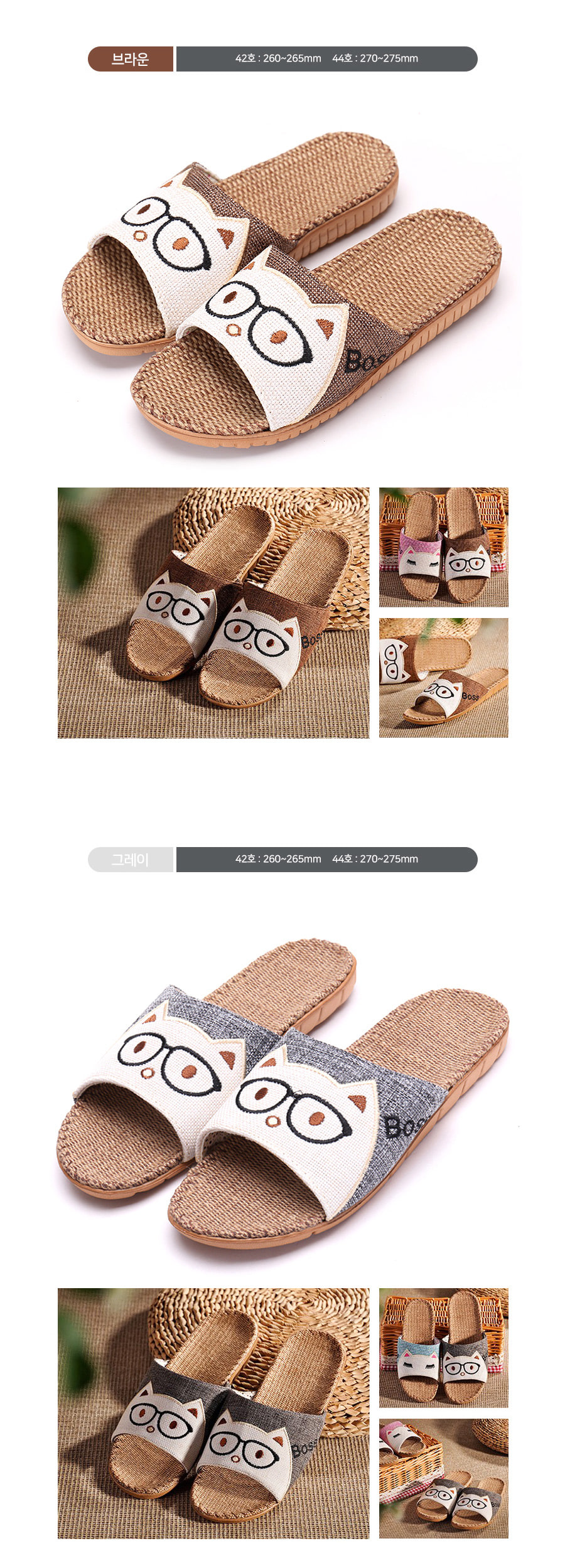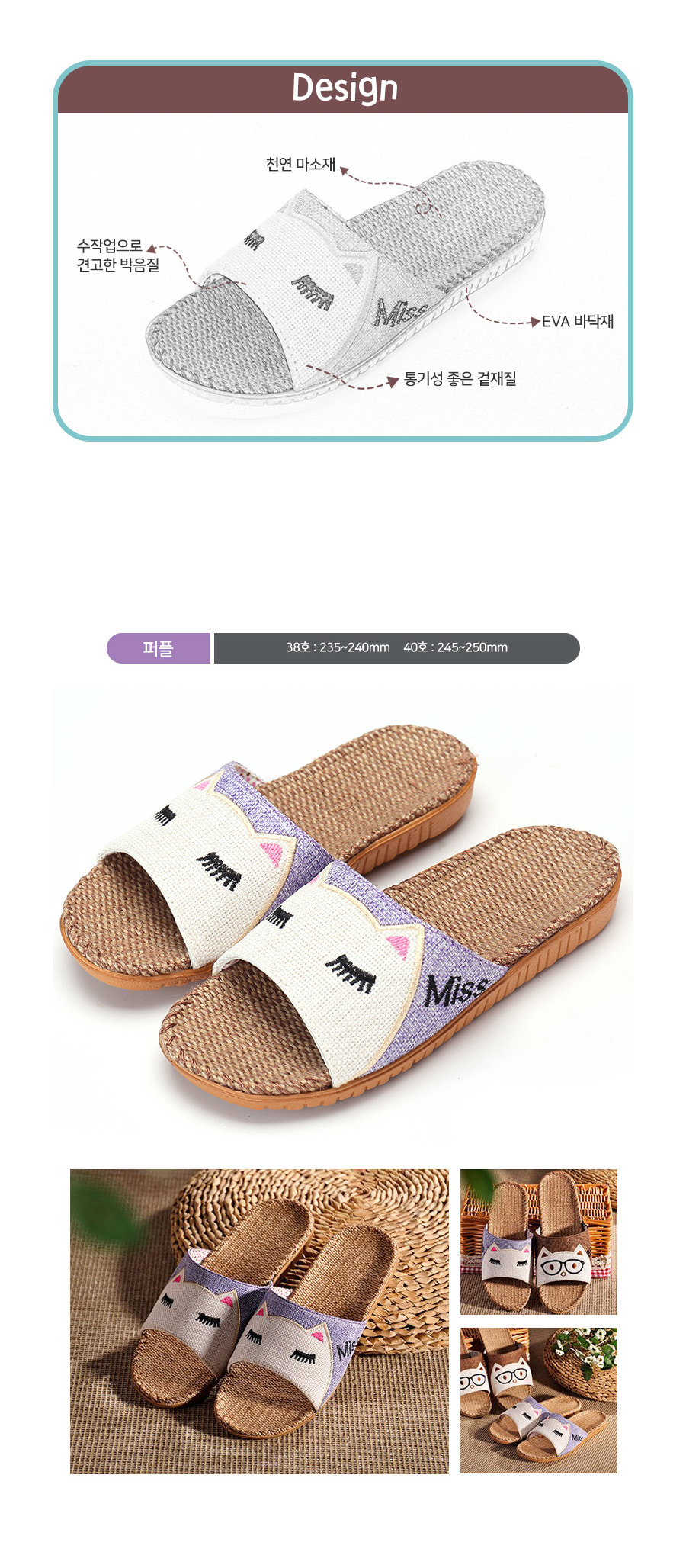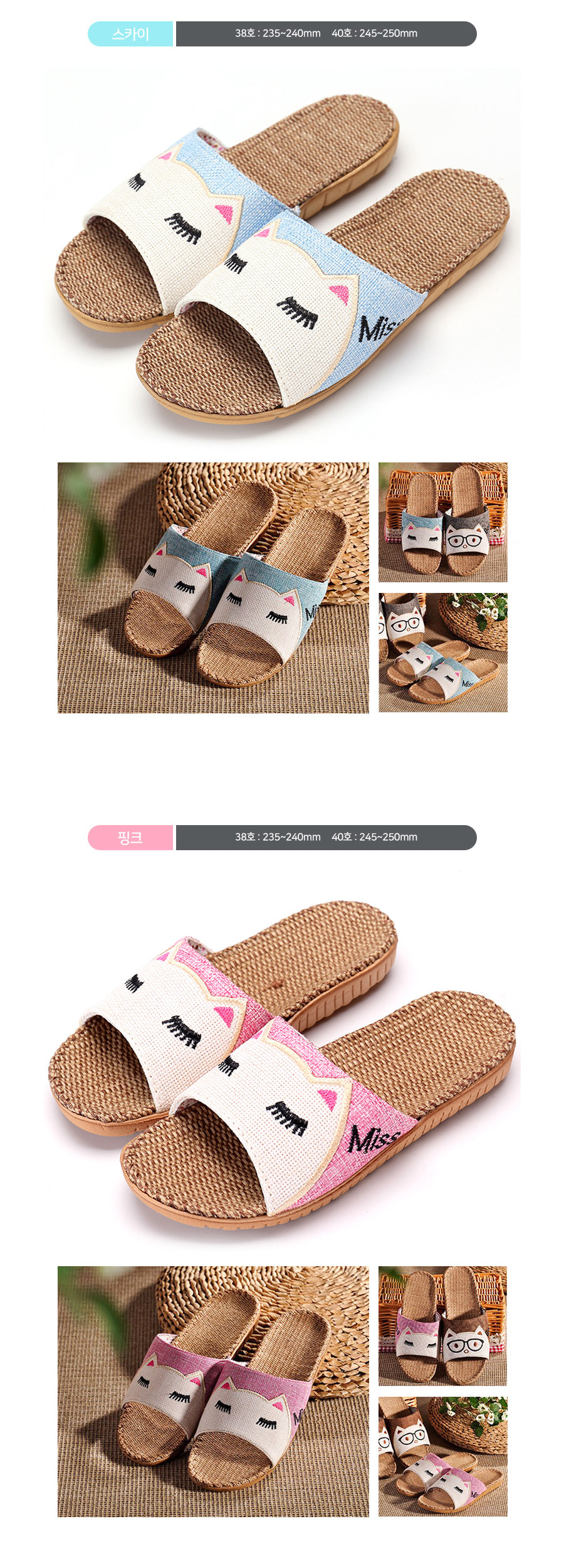 고양이 왕골 슬리퍼 여름 샌들 린넨 마 실내화 거실화 무료배송
