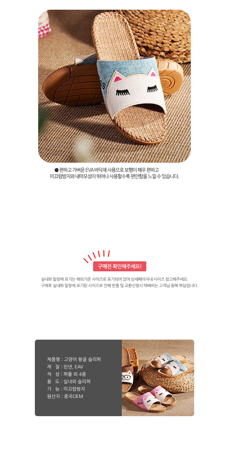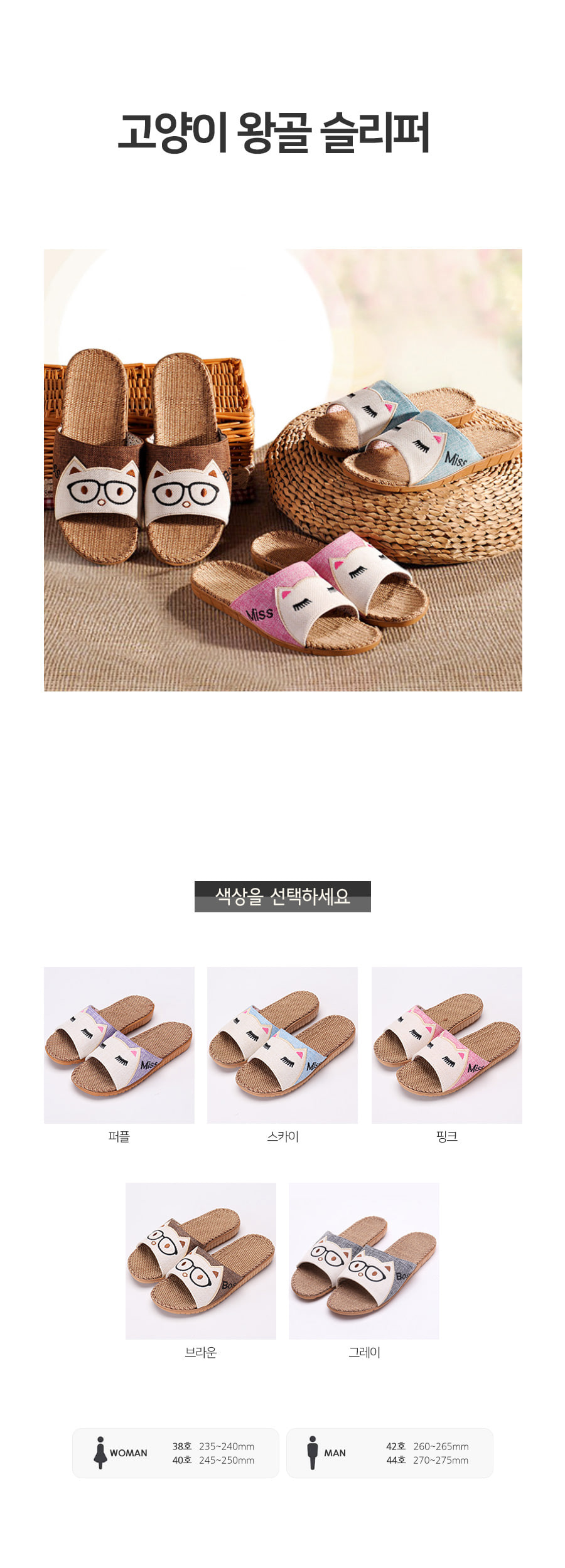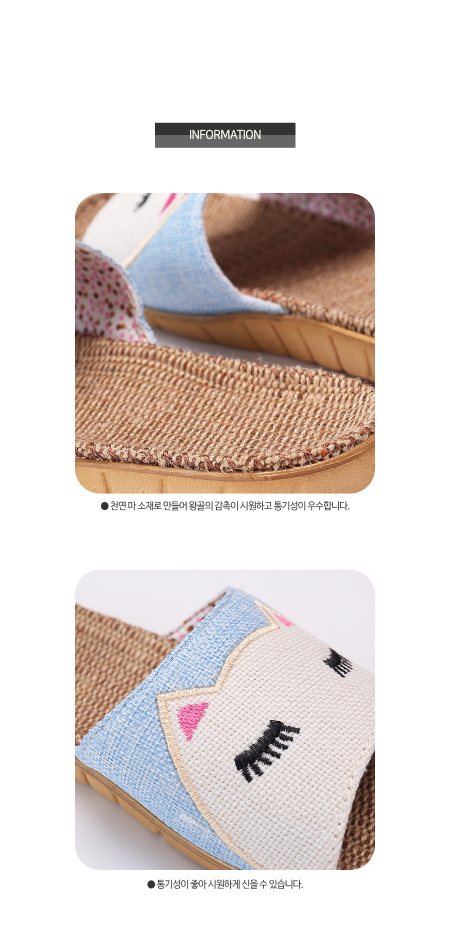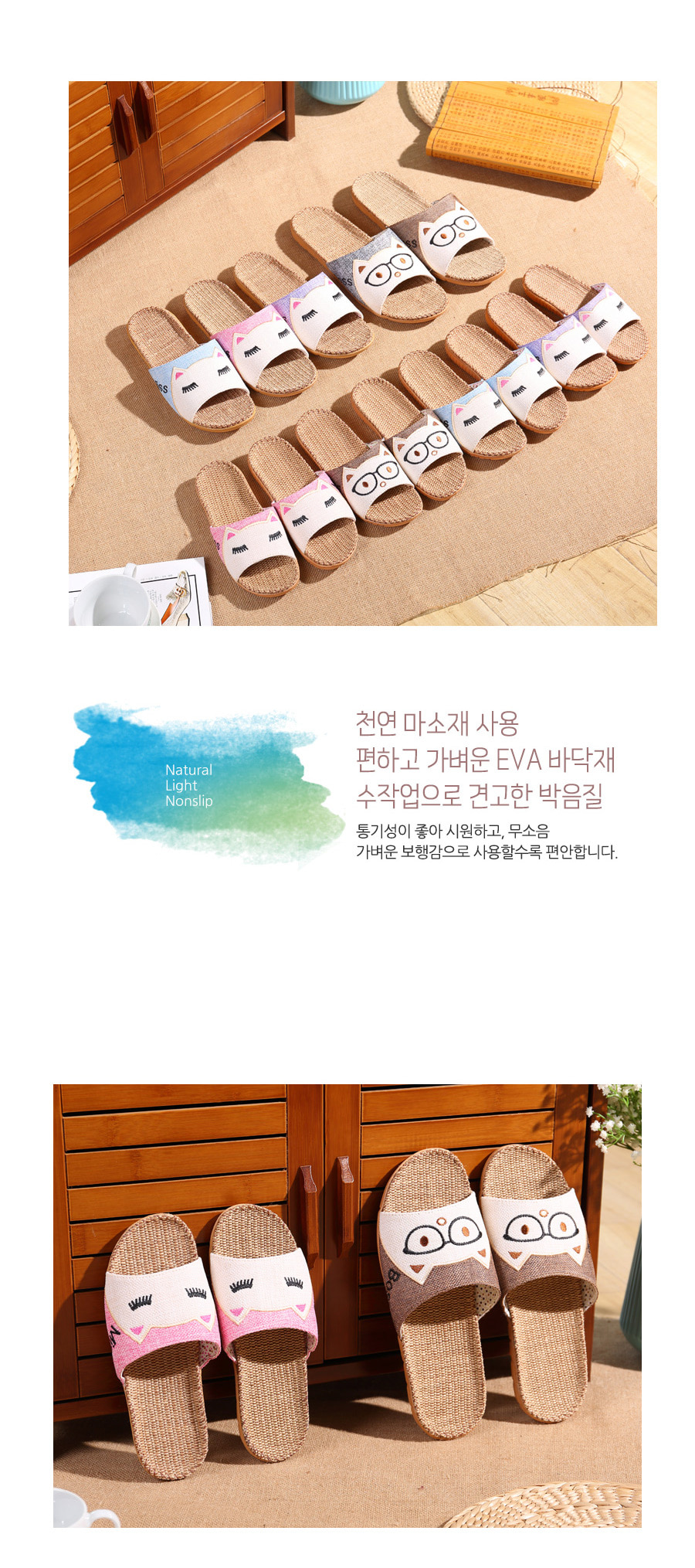 고양이 왕골 슬리퍼 여름 샌들 린넨 마 실내화 거실화 무료배송