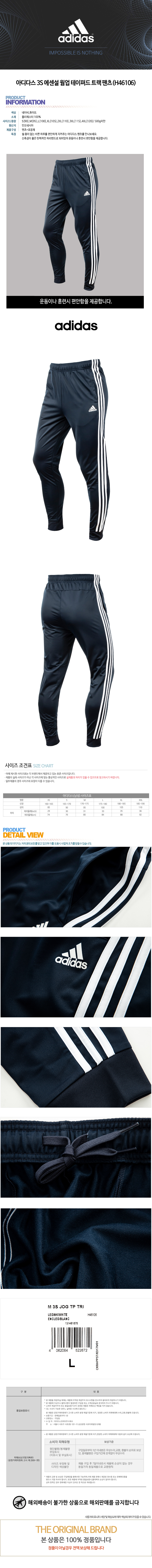 아디다스 3S 에센설 웜업 테이퍼드 트랙 팬츠(H46106)