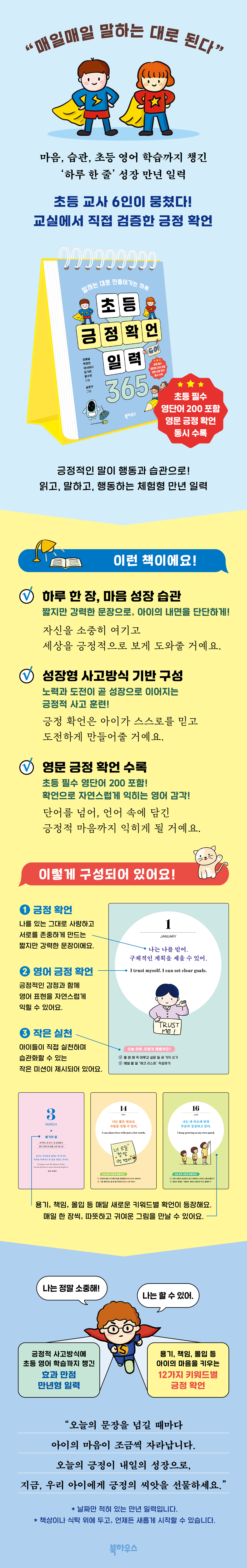 [북하우스] 초등 긍정 확언 일력 365 - 말하는 대로 만들어가는 하루 [ 스프링북 ]