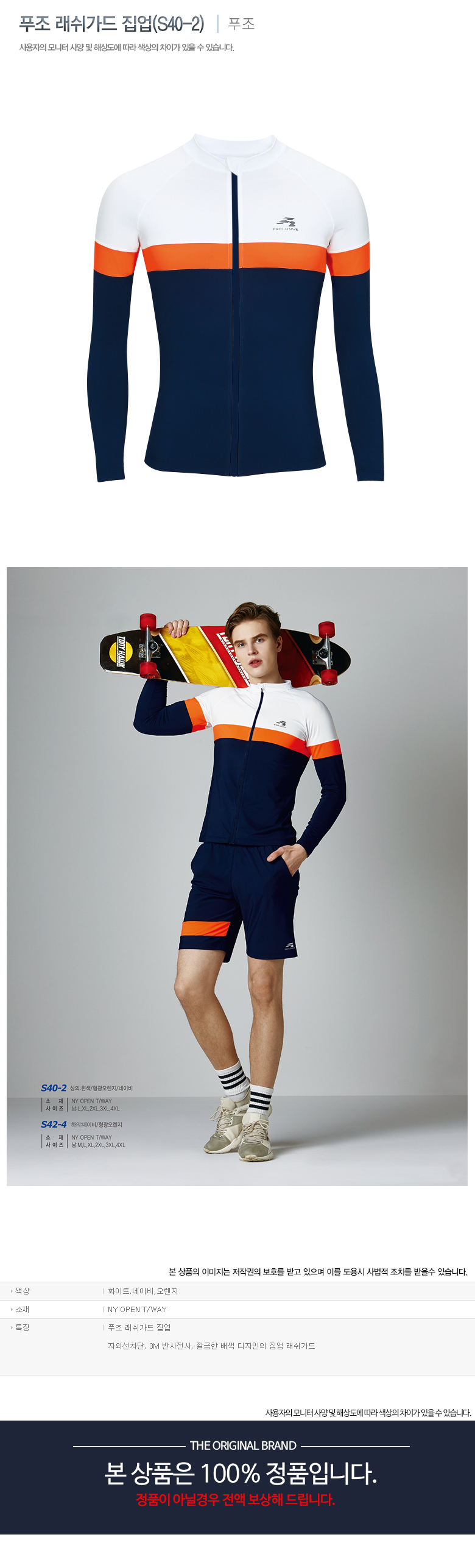 푸조 래쉬가드 집업은 상의로만 구성된 상품으로, 하의는 별도로 구매하셔야 합니다.