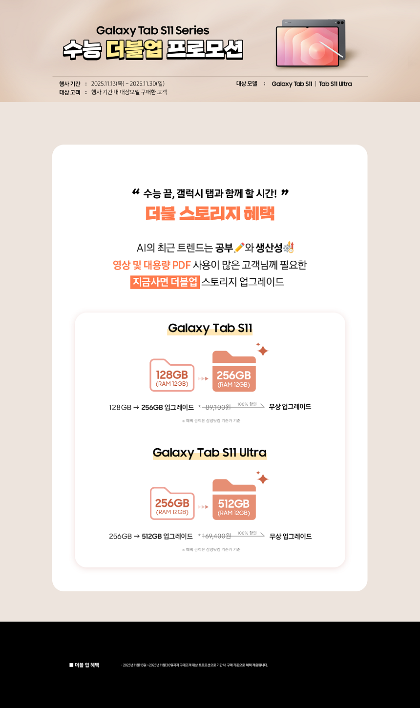 ★더블업혜택★ NEW 삼성 갤럭시탭 S11 Ultra (WiFi) (256GB) -> (512GB) (색상선택) SM-X930N
