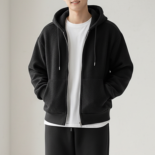 투웨이 헤비 후리스 크롭 기모 후드집업 플리스 자켓 2color