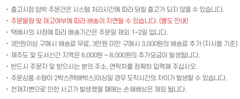 (단, 공휴일은 포함되지 않으며, 군부대 및 도서 산간 지역의 경우 지연될 수 있습니다.)