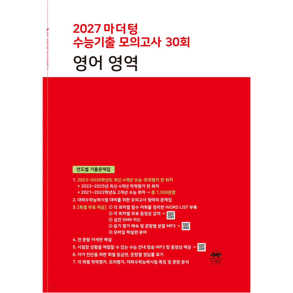 [마더텅] 2027 마더텅 수능기출 모의고사 30회 영어 영역 (2026년)